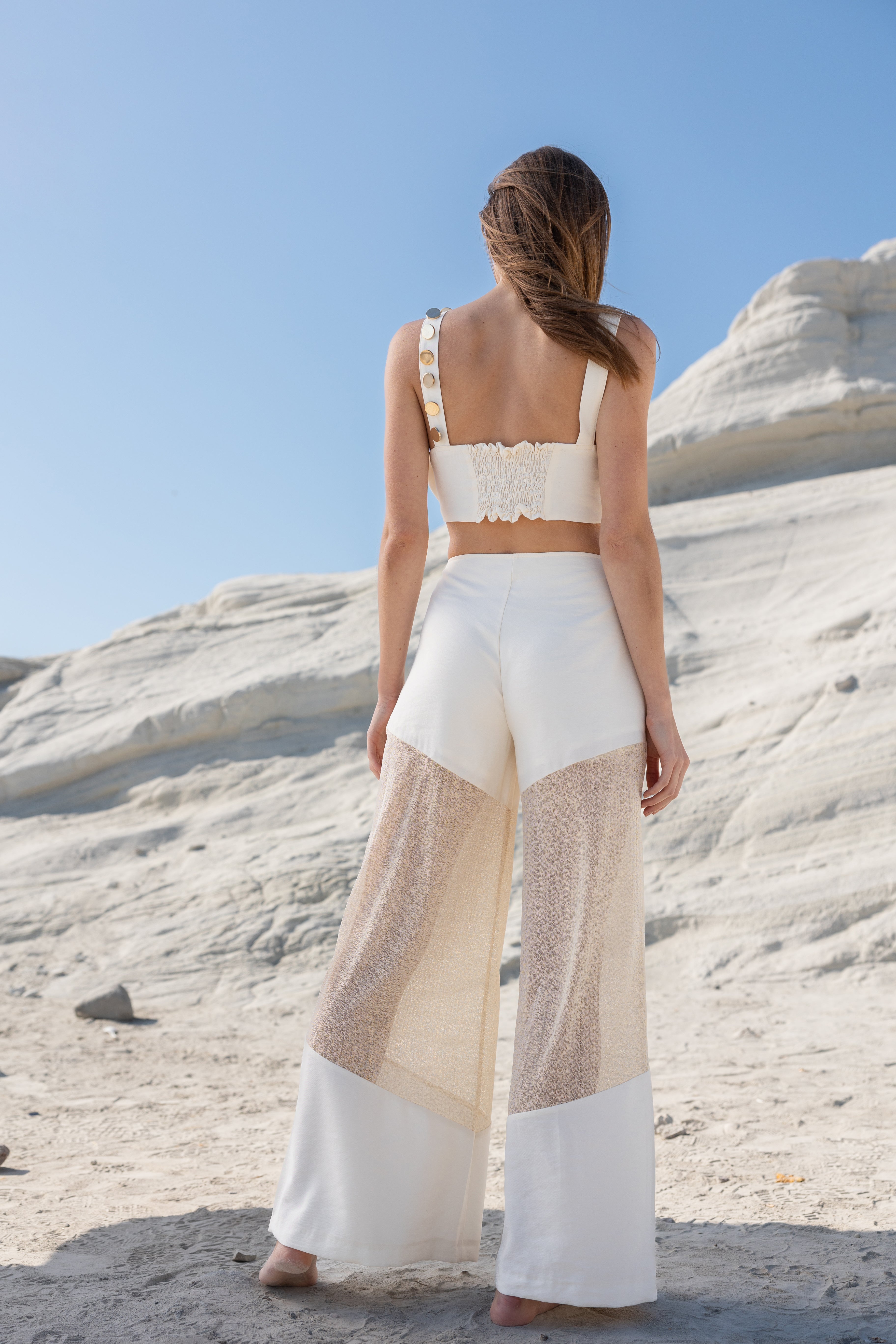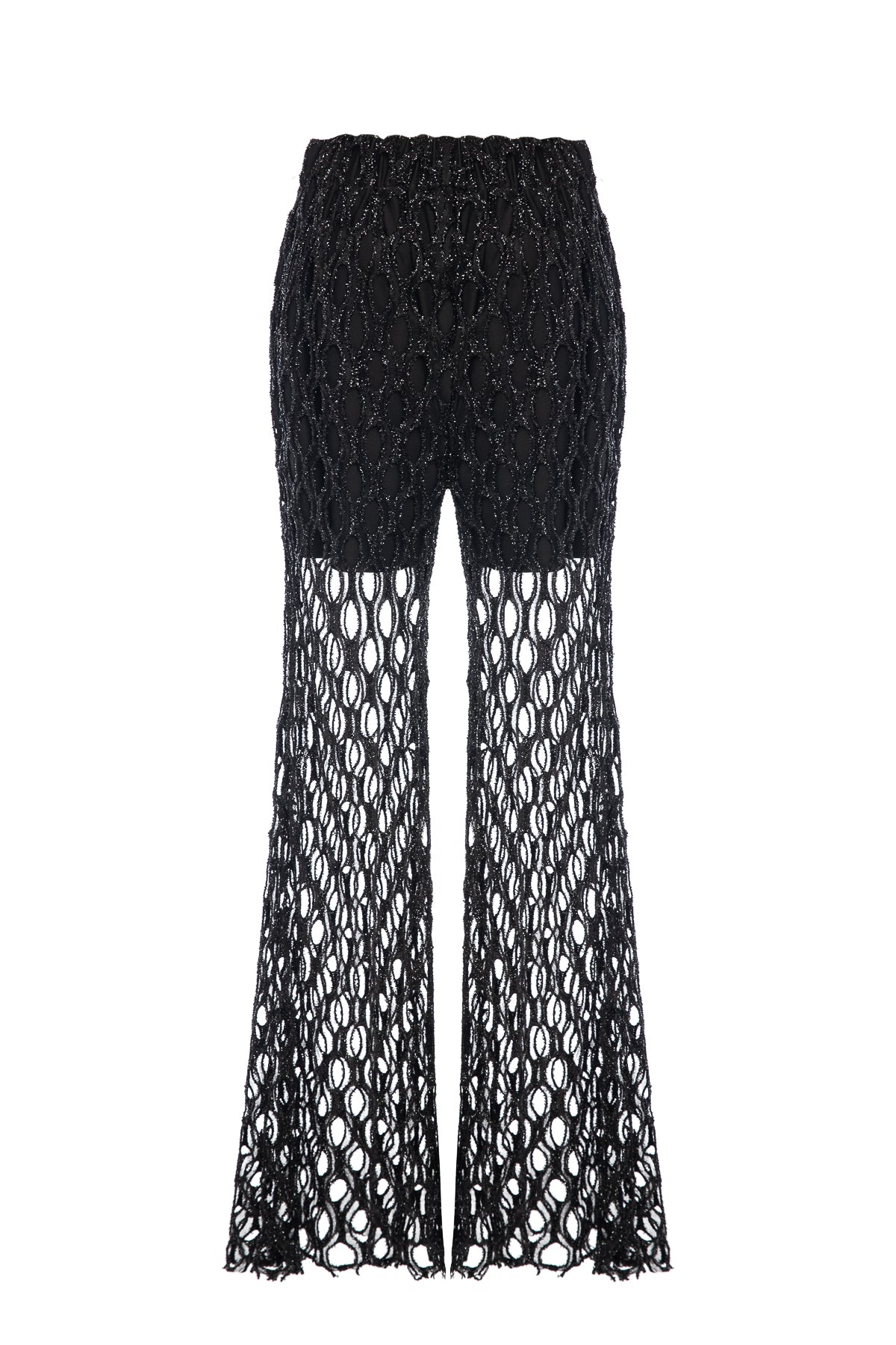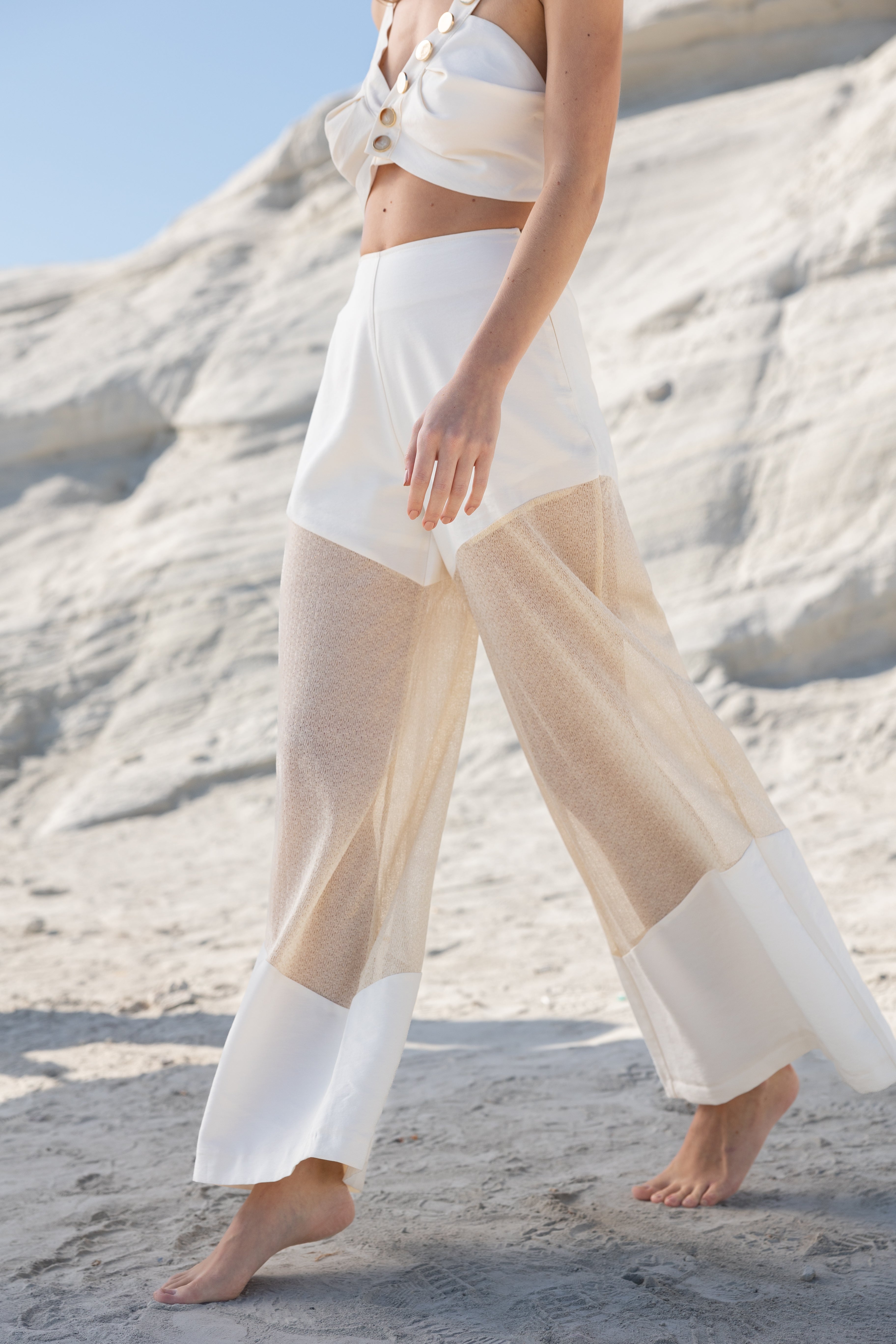 Işıltılı Transparan Örme Kumaş Detaylı, Yüksek Bel, Palazzo Pantolon