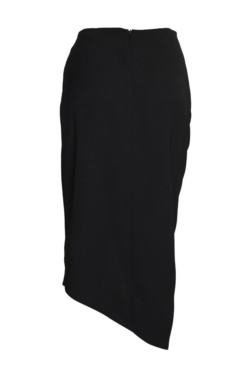 BLACK, Siyah Yüksek Bel Yırtmaçlı Midi Saten Krep Etek