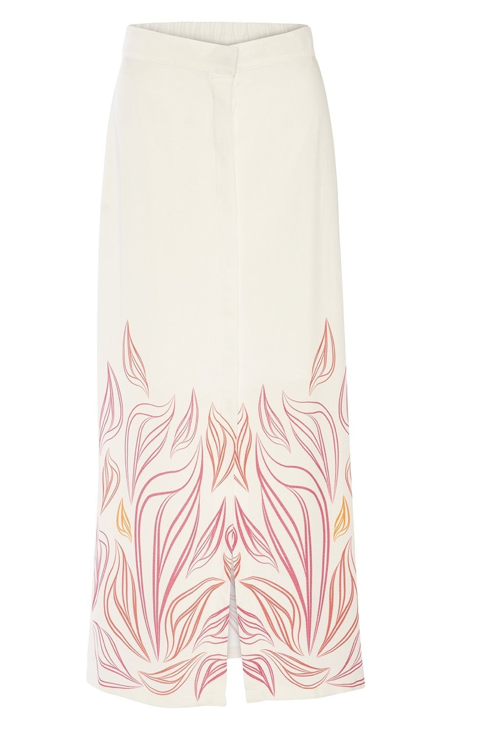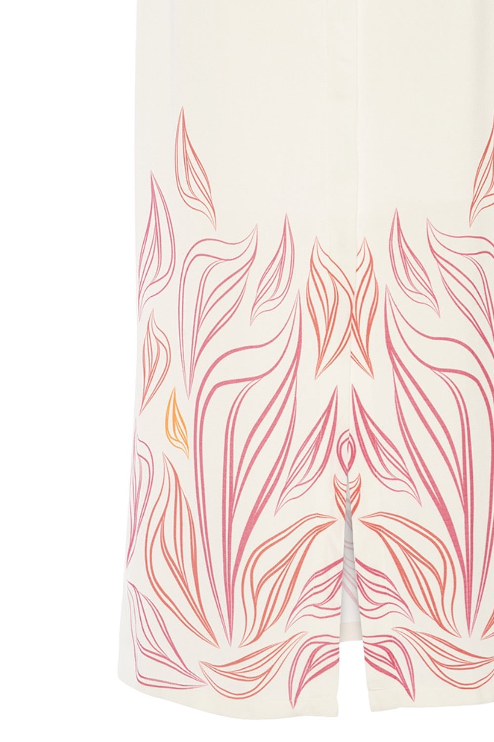 Lobelia Beyaz, Uzun, Yırtmaçlı, Tasarım Baskılı, Etek