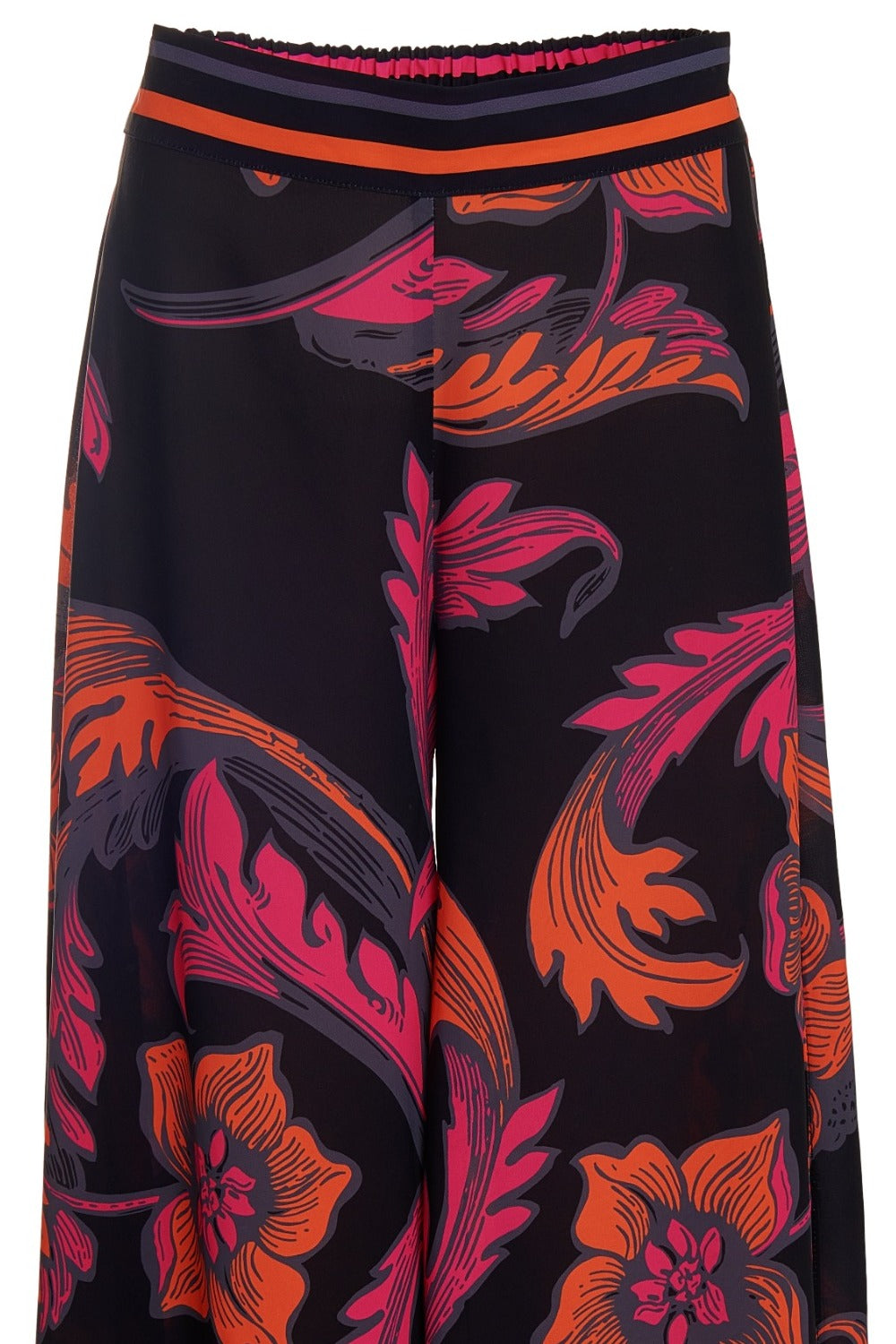 Siyah ispanyol paça, dekoratif dantel, parıltılı kumaş detaylı, astarlı pantolon.
