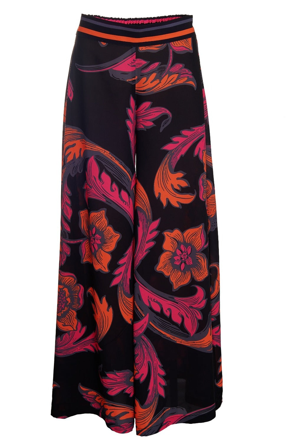 Yüksek Belli Siyah Saten, Önden Yırtmaçlı Pantolon