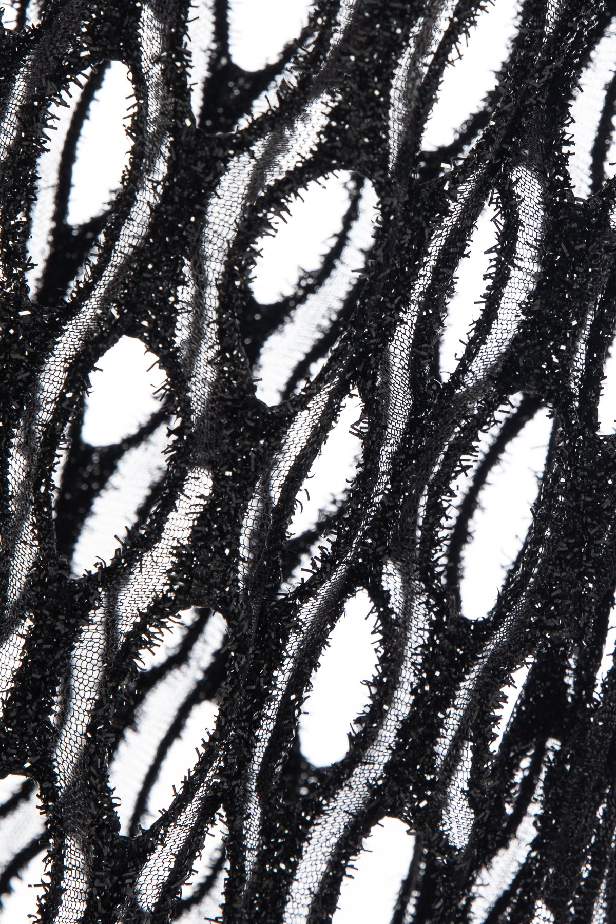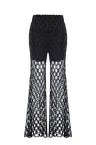 Siyah ispanyol paça, dekoratif dantel, parıltılı kumaş detaylı, astarlı pantolon.