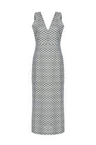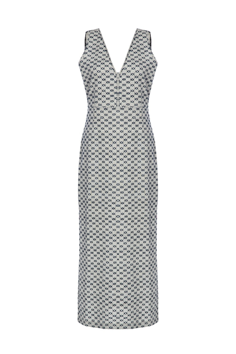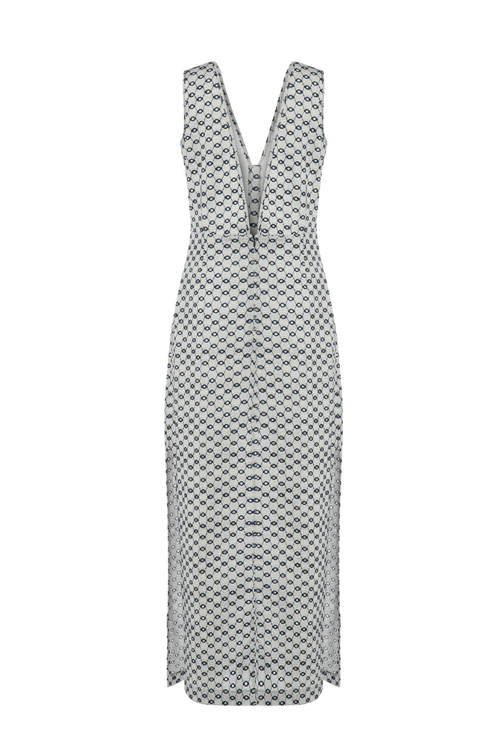 Eden, Yanları Yırtmaçlı, Lacivert Jakarlı Uzun, Koton Karışımlı Elbise