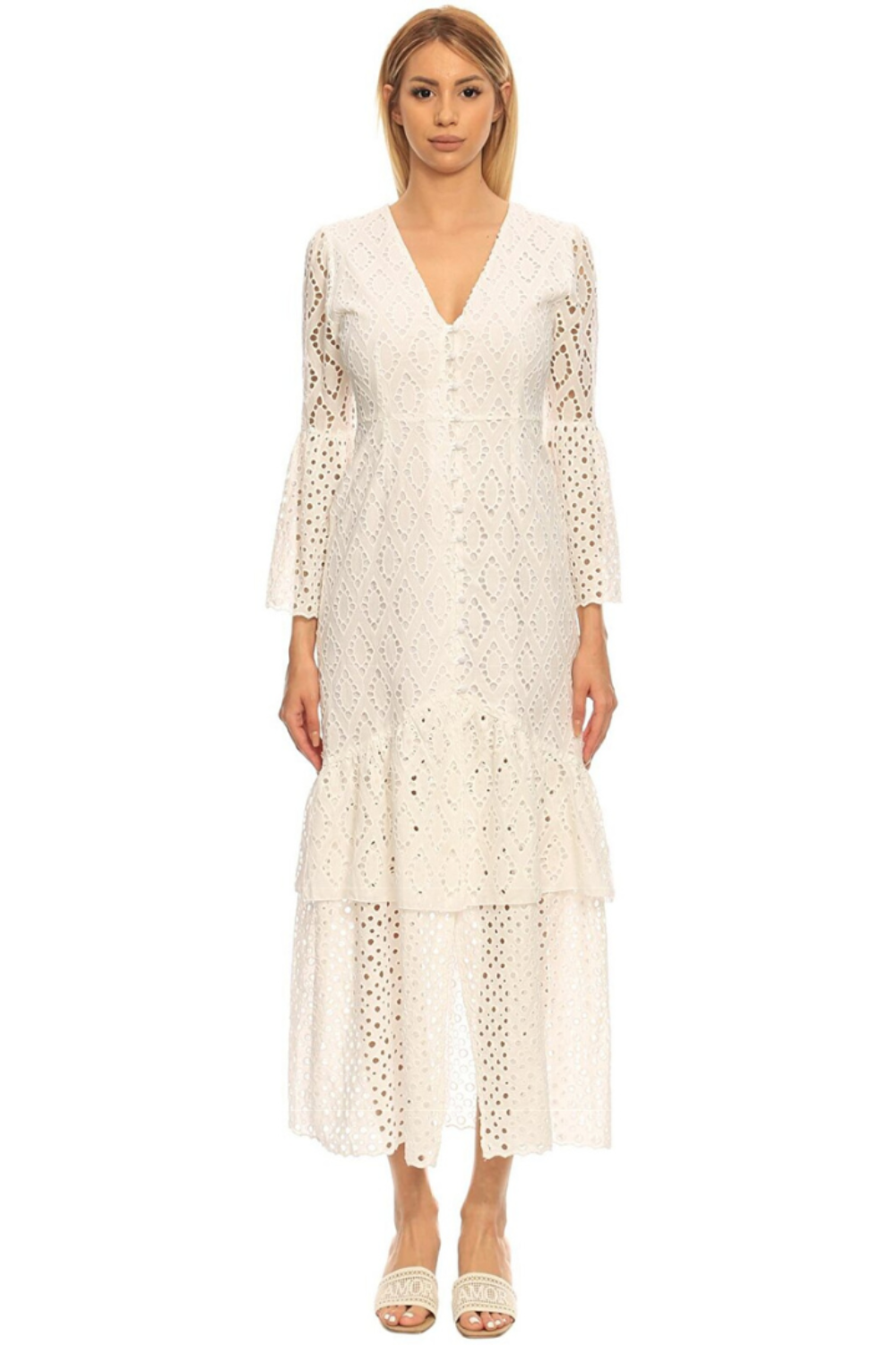 Victoria, Brode, Önden Yırtmaçlı, Çok Katlı, Uzun Beyaz Elbise