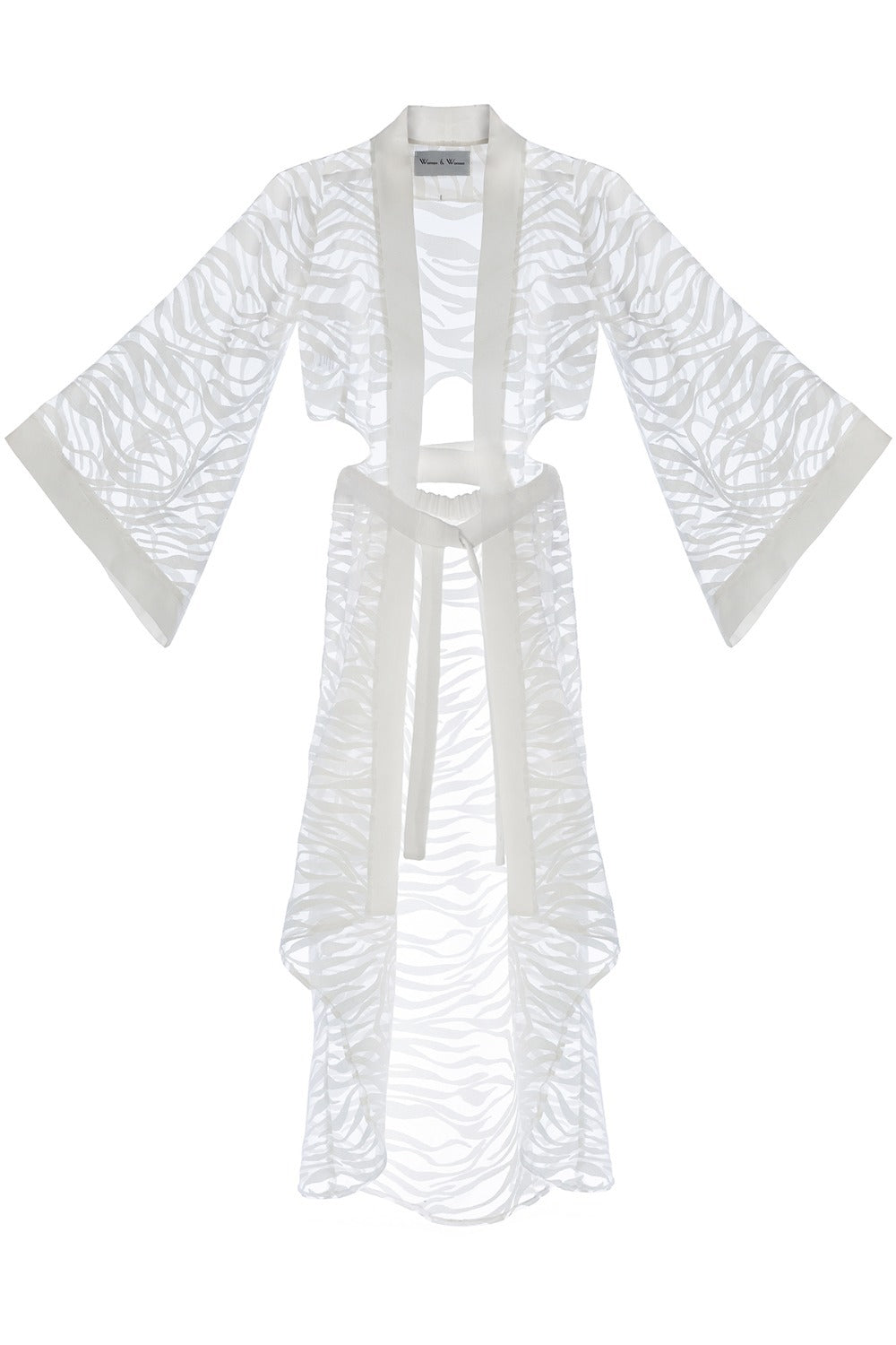 Sevilla Ekru Beyaz Renkli, Transparan Zebra Desenli Tasarım Kimono Elbise