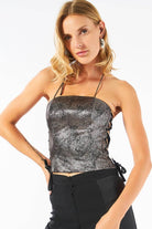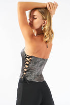 Metalik Siyah Desenli Saten Straplez Büstiyer