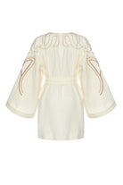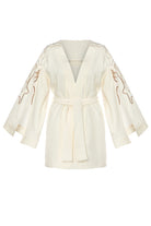 Dokuma, Nakışlı, Taş Işıltılı, Ekru Beyaz Pelerin Kimono