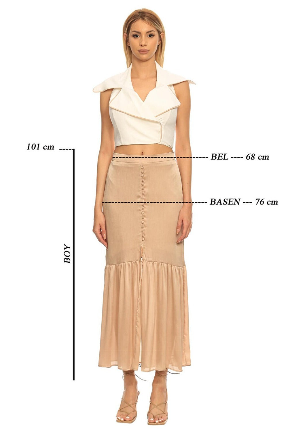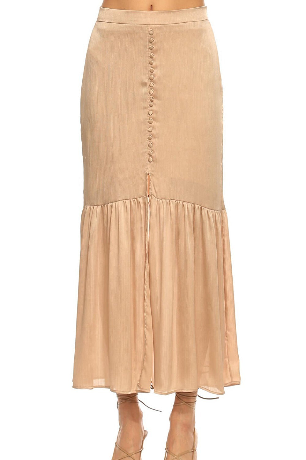 Hermosa Slit, Long, Buttoned, Satin Skirt