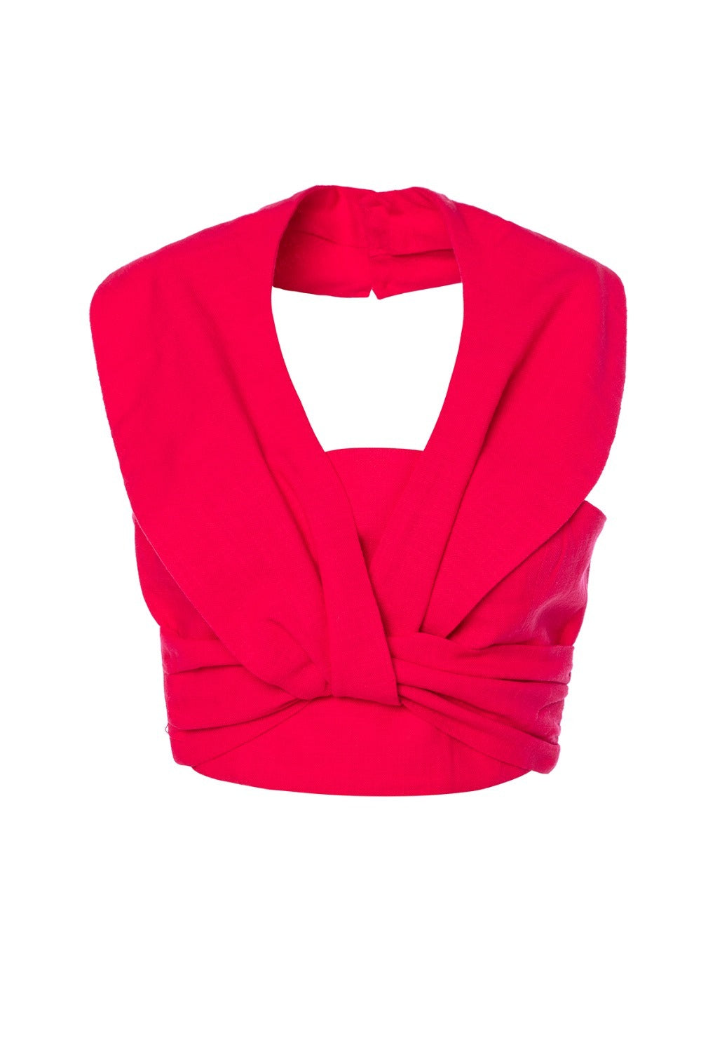 Meria Cotton, Tie-Neck, Pink, Short Top