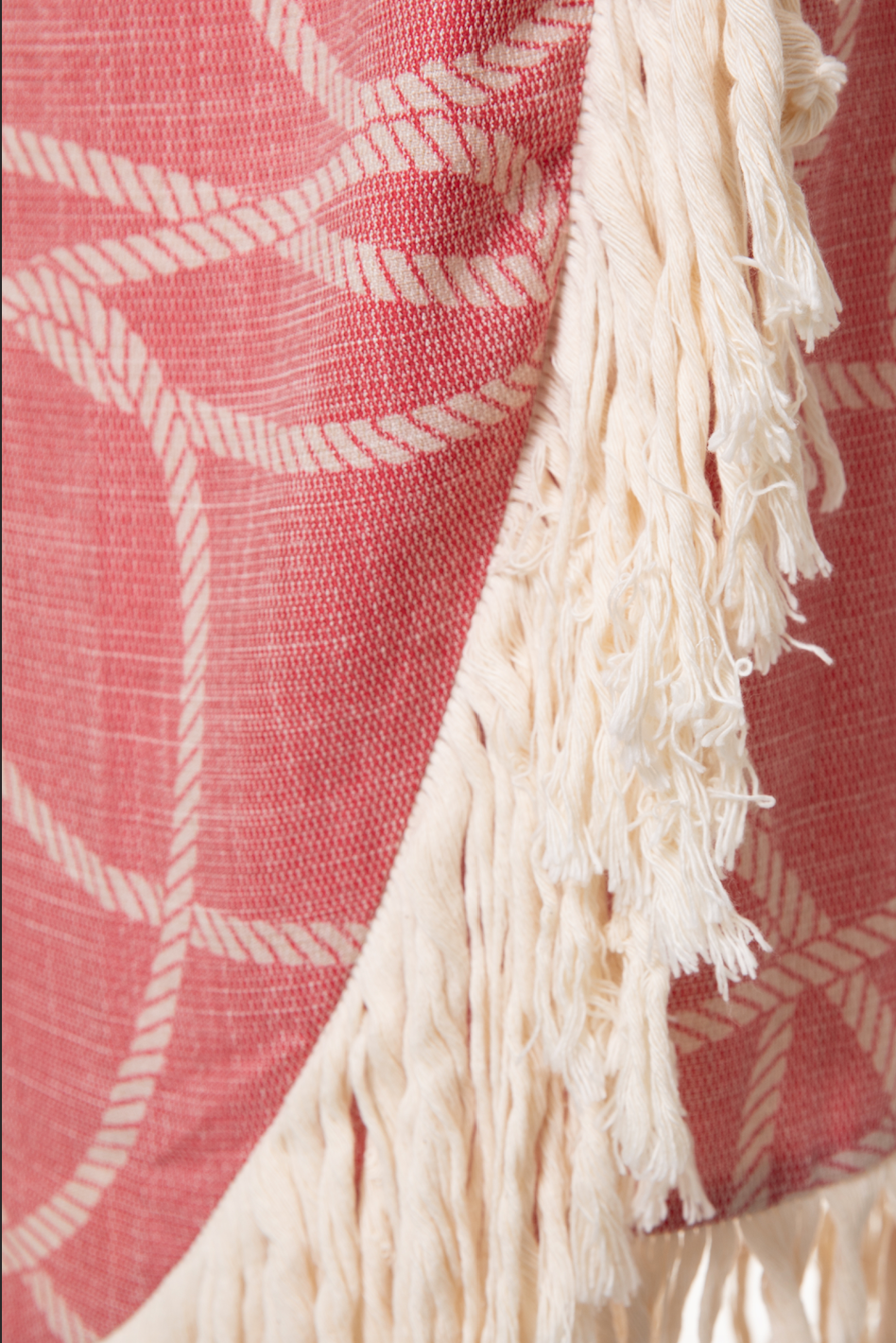 Balina Pareo : Kırmızı Marine Halat Desenli, Saçaklı Kruvaze Dökümlü Pareo Etek,